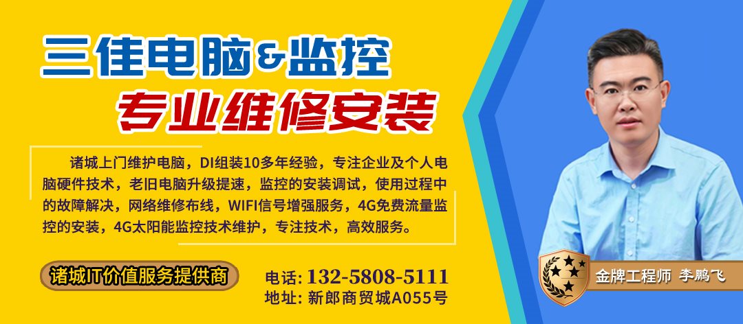诸城电脑上门维修调试80元起,如有需要请电话联系:132 5808 5111 地址:山东省诸城市希努尔商贸城A054-055号