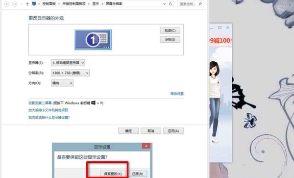 3、然后屏幕就转回来啦,但是此时还要点击出现的小对话框中的【保留更改】,不然过一会儿它又会直接转回去的。
